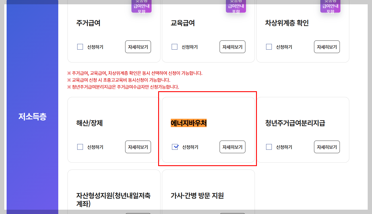 정부가 취약계층을 위해 에너지비용을 이용권 형태로 지급해 주는 제도인데요.