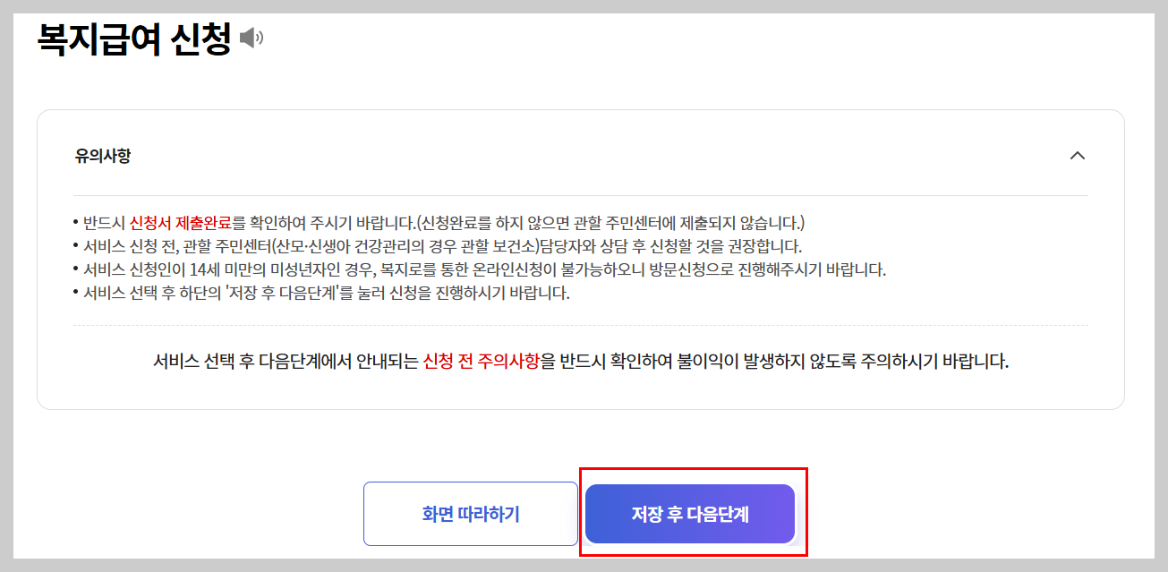 - 신청단계: 본인 또는 대리인이 행정복지센터 방문해 신청