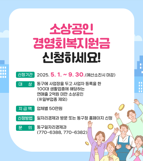 2025년 경기 회복을 위한 소상공인 지원금 중 하나, 바로 인천 동구청의 영세 소상공인 경영회복지원금입니다.