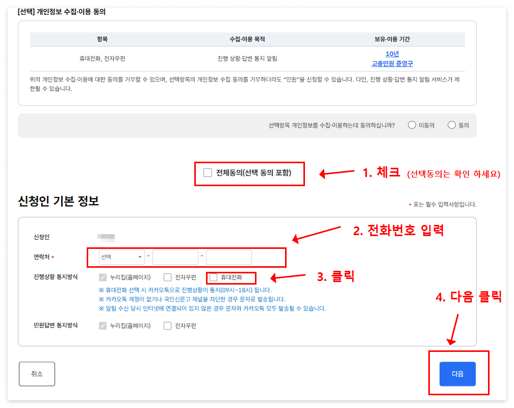 - 3. 개인정보수집 동의 및 신청인 기본정보 작성