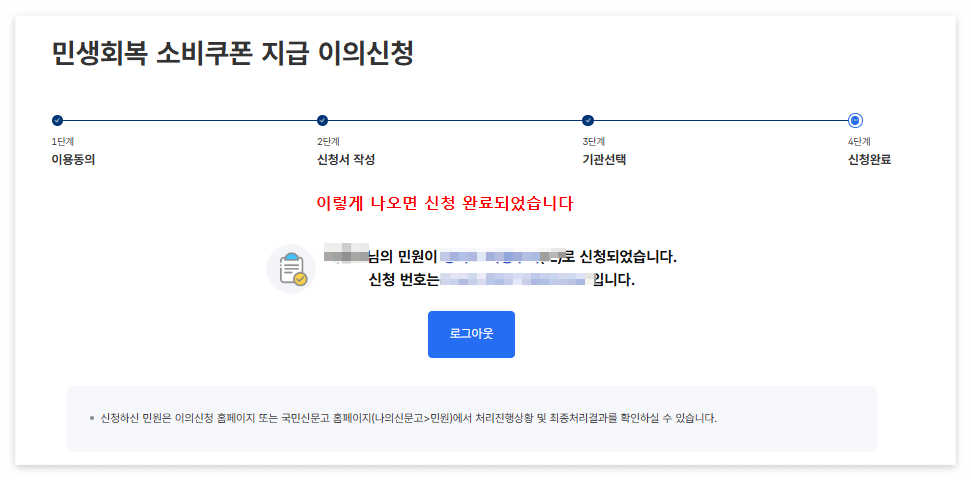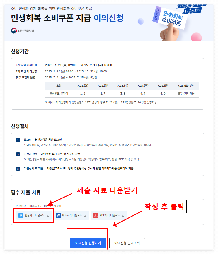 - 본인 인증 → “민생회복 소비쿠폰 지급 이의신청” 선택