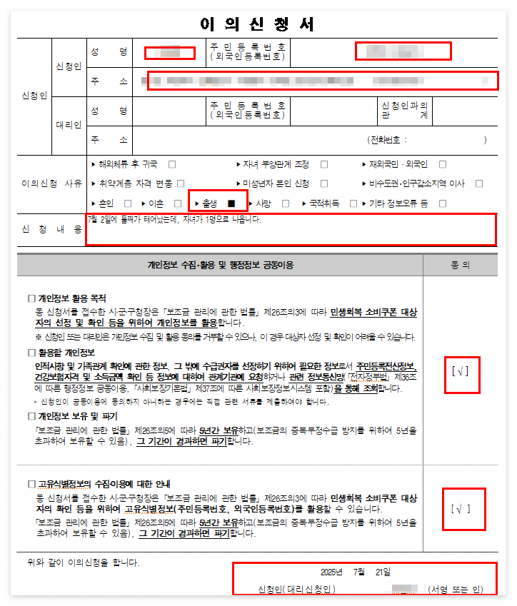 - 자녀가 최근 태어났다면 빠르게 이의신청 접수해서 꼭 혜택 누리세요!